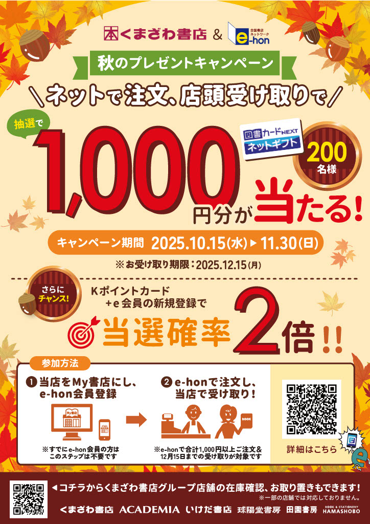 くまざわ書店&e-hon秋のプレゼントキャンペーンのお知らせ
