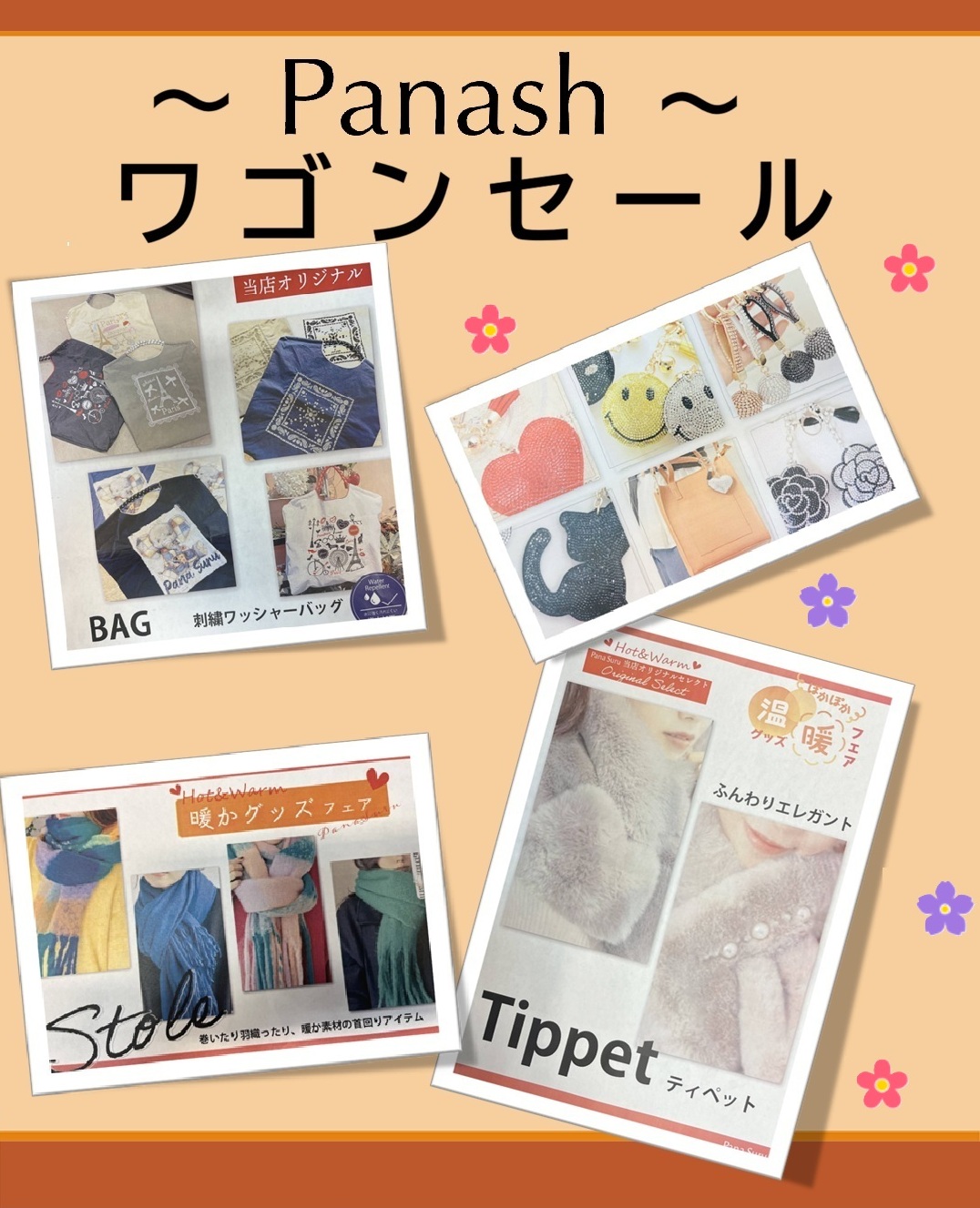 パナシュ 「ワゴンセール」開催!! ストールや帽子、バック、アクセサリーなど、日常にちょっとしたアクセントを加えてくれるアイテムをお買い求め易い価格で豊富に取り揃えております。 是非、この機会にご来店くださいませ!!皆様…