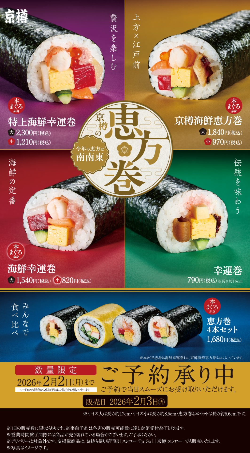 京樽・スシロー 恵方巻 ご予約承り中!!