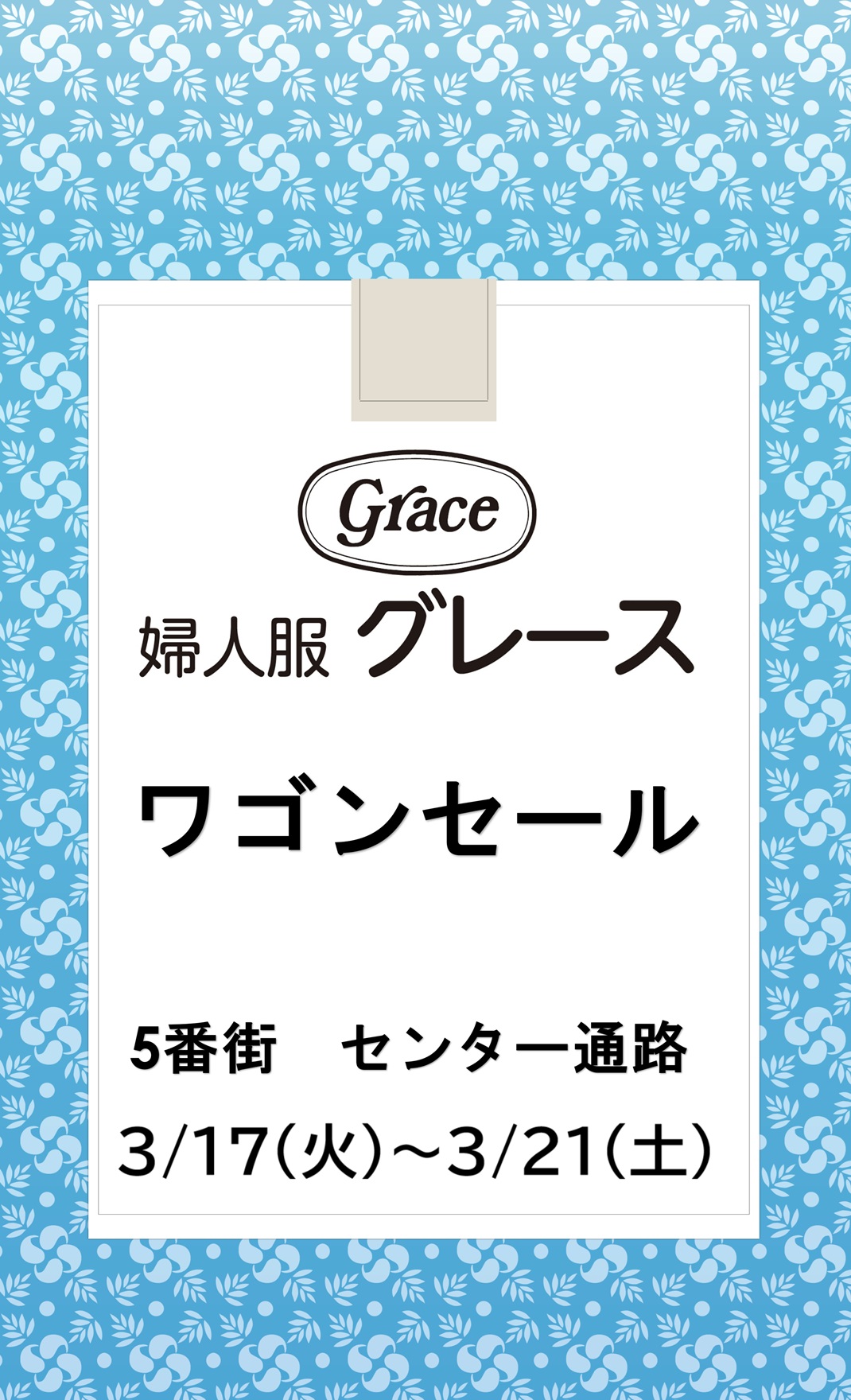 グレース ワゴンセール開催!!3/17(火)~3/21(土)これからの季節に活躍する春色カラーのスプリングジャケット軽やかなブラウス・カットソー各種その他、毎回好評のアンサンブルジャケットを特別価格にてご用意しております…