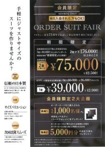 6番街 タカキューにおきまして、オーダースーツフェアを開催致しております。