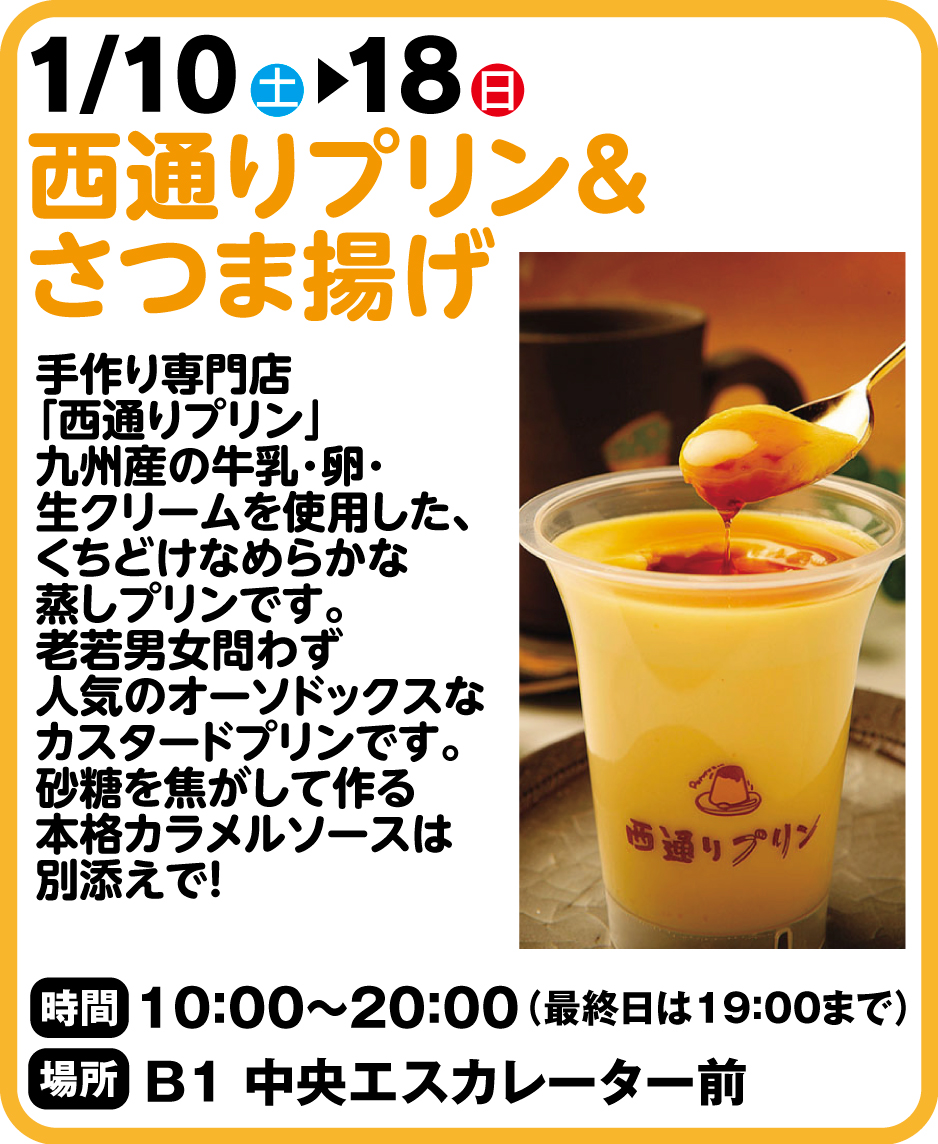 1月10日~18日 西通りプリン&さつま揚げ