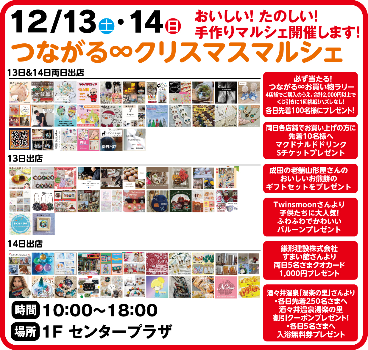 開催日:12月13日(土)14日(日) 11:00~18:00 会場:1Fセンタープラザ 大好評のガラガラ抽選会を開催! 詳しくはこちらから
