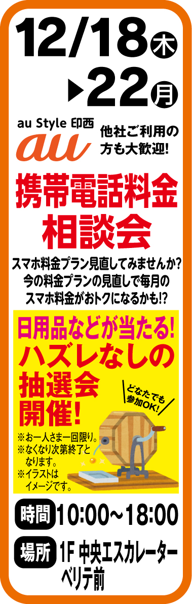 12月18日~22日 au Style 印西 携帯電話料金相談会