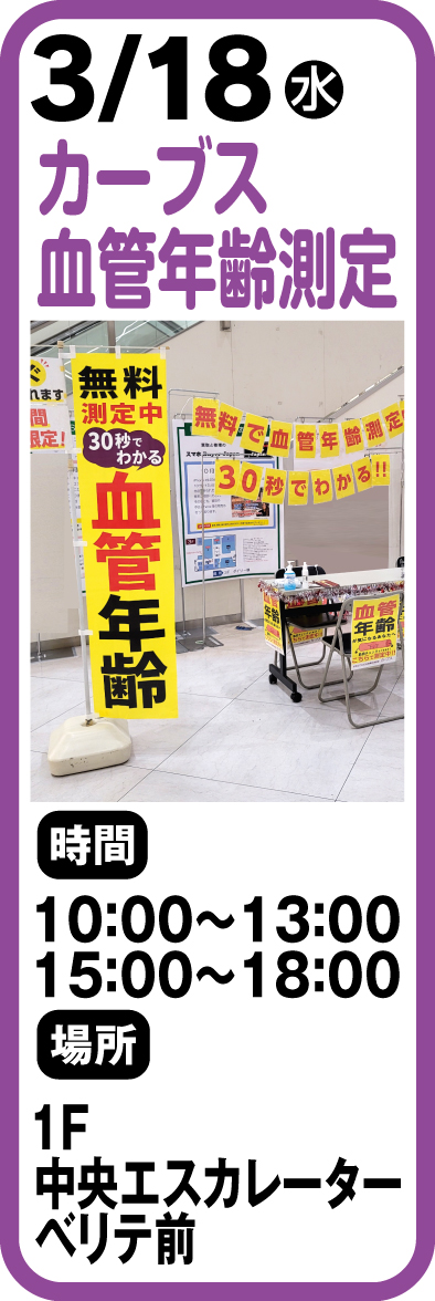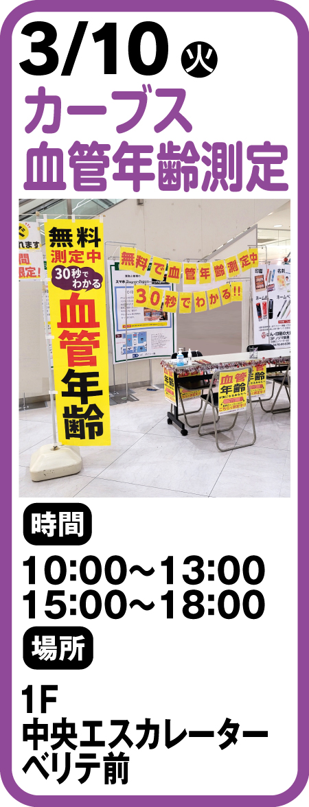 ■時間 10:00~13:00 15:00~18:00■場所 1F中央エスカレーターベリテ前