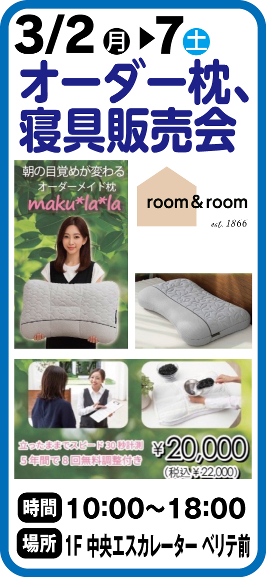 3月2日~7日 ルーム&ルーム オーダー枕、寝具販売会