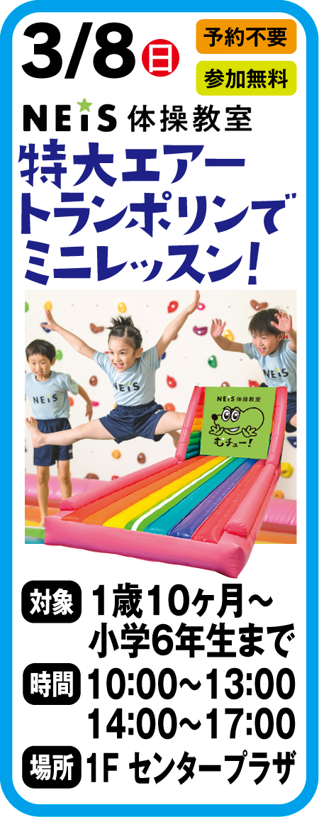 3月8日 ネイス体操教室 特大エアートランポリンでミニレッスン!