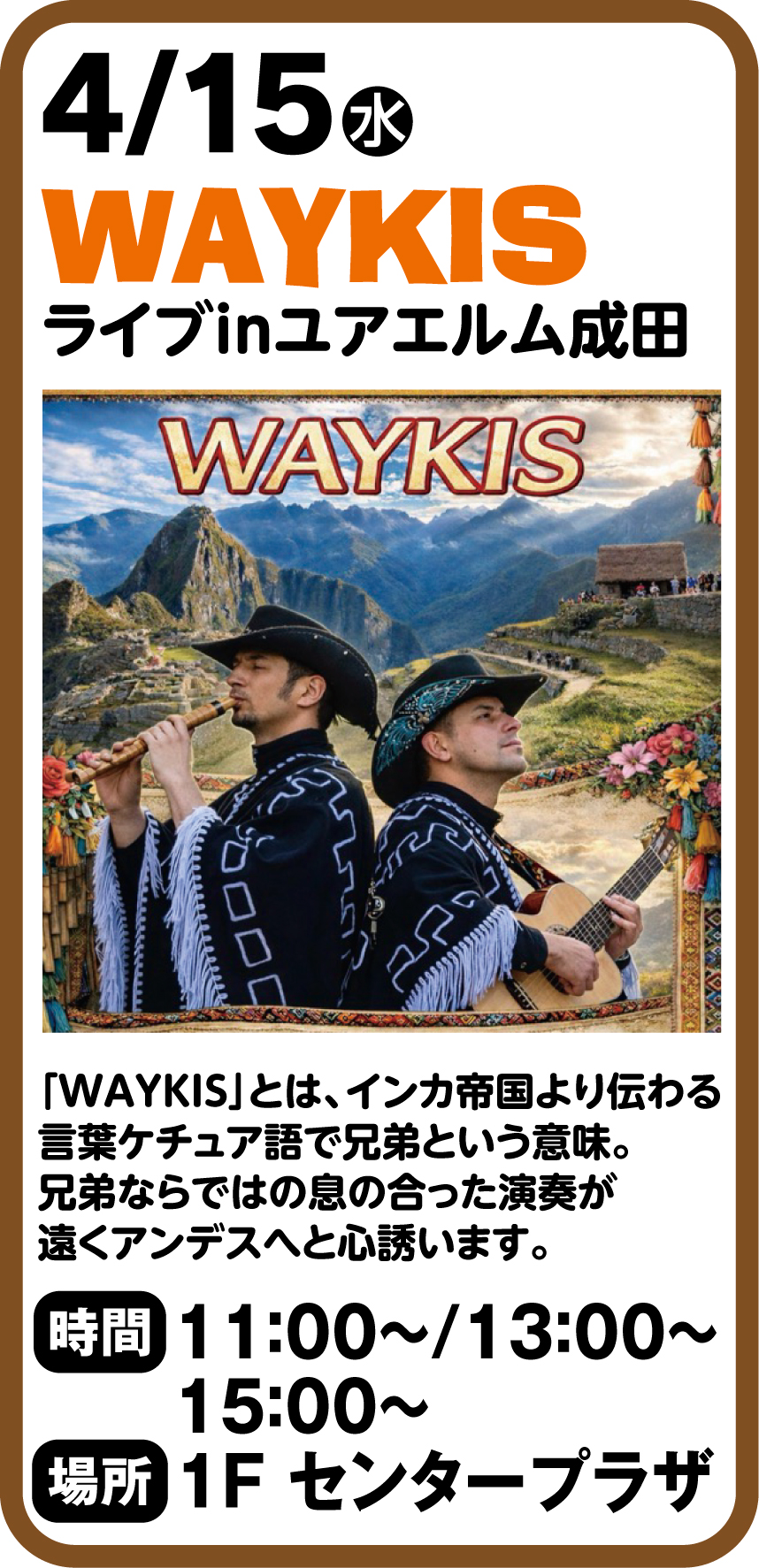 ■場所:1Fセンタープラザ ■時間:15:00~/17:00~
