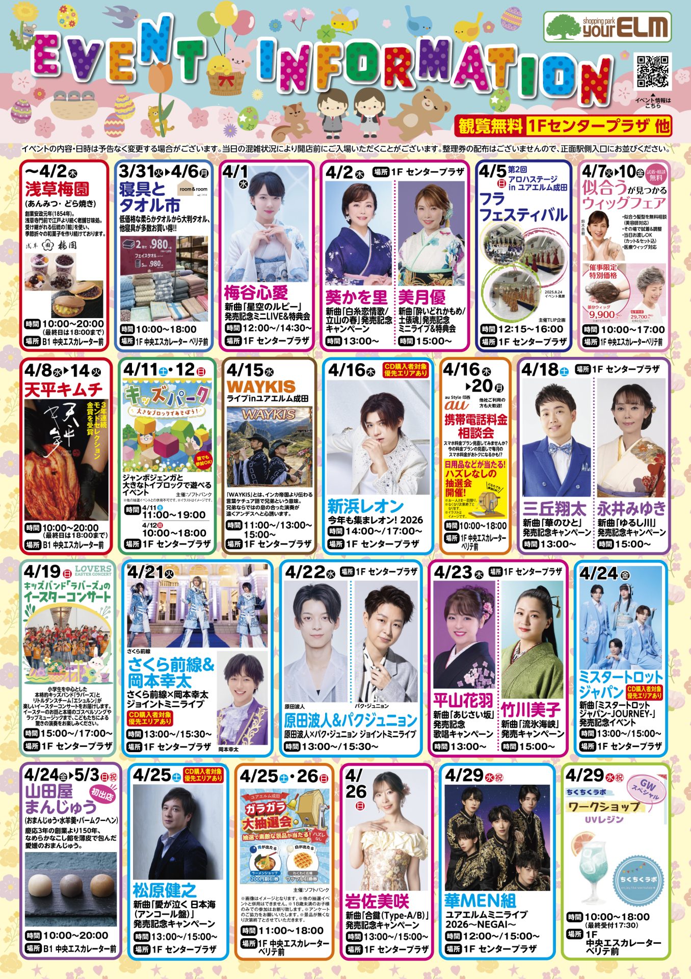 4月もユアエルムはイベントが盛りだくさん。詳しくはこちらをご覧ください。 皆様のご来店を心よりお待ちしております。