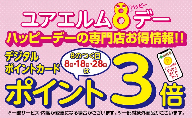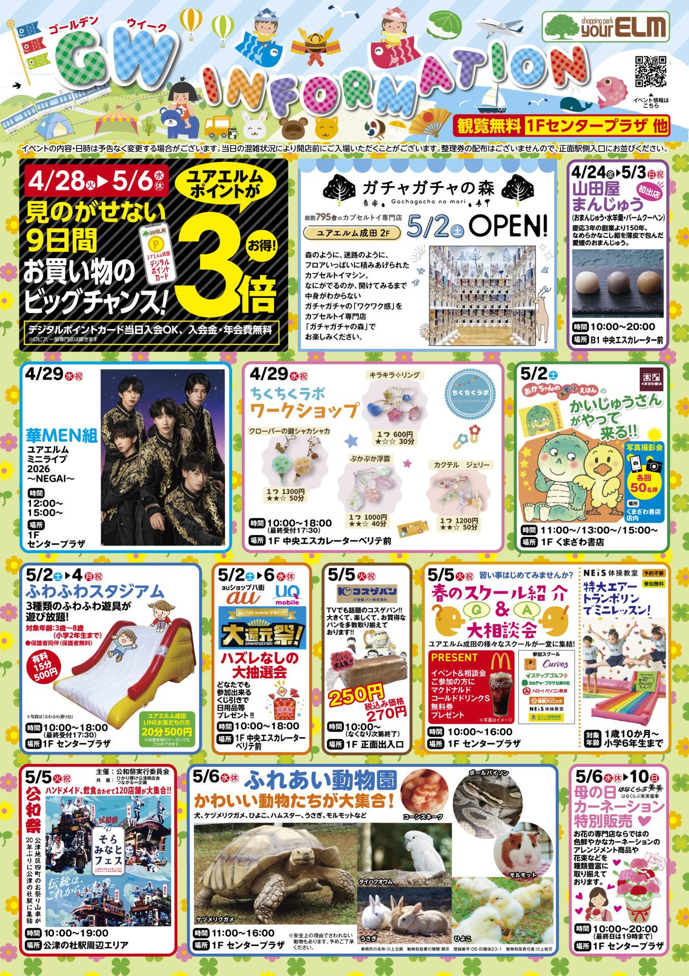4月28日~5月6日 ユアエルム成田 ユアエルムポイントが3倍お得! 見逃せない9日間 お買い物のビッグチャンス!!
