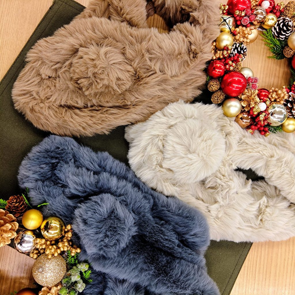 ファー素材のマフラーや、帽子、