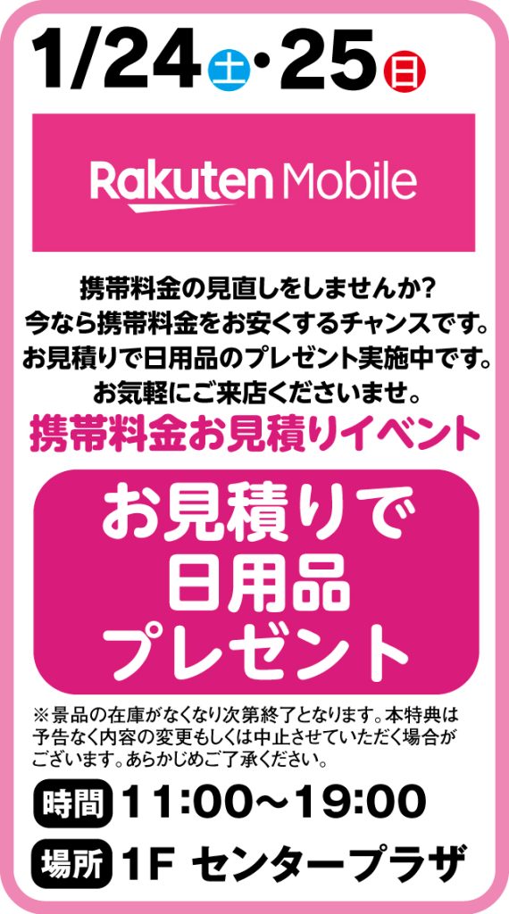 1月24日・25日 楽天モバイル 携帯料金お見積りイベント