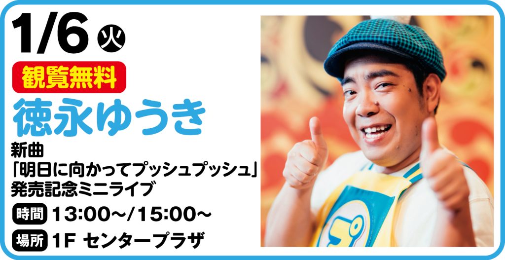 徳永ゆうき、ニューシングル「明日に向かってプッシュプッシュ」発売記念ミニライブキャンペーンを「ユアエルム成田」にて実施いたします。
