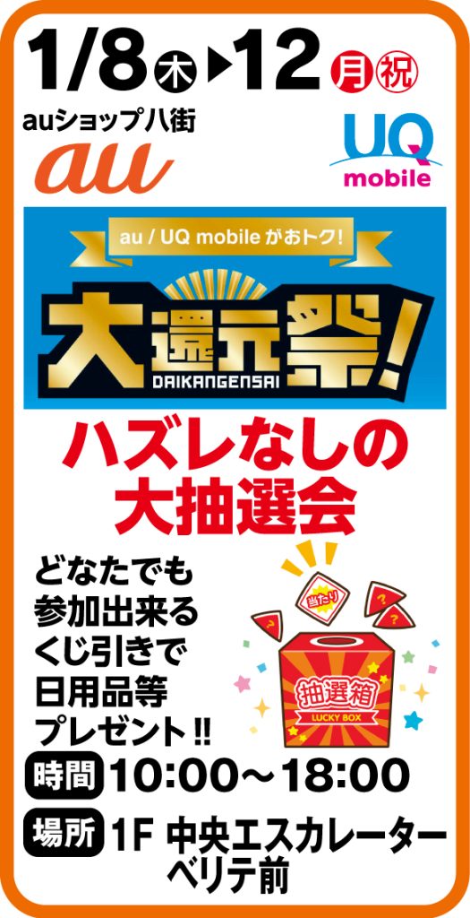 1月8日~12日 auショップ八街 ハズレなしの大抽選会