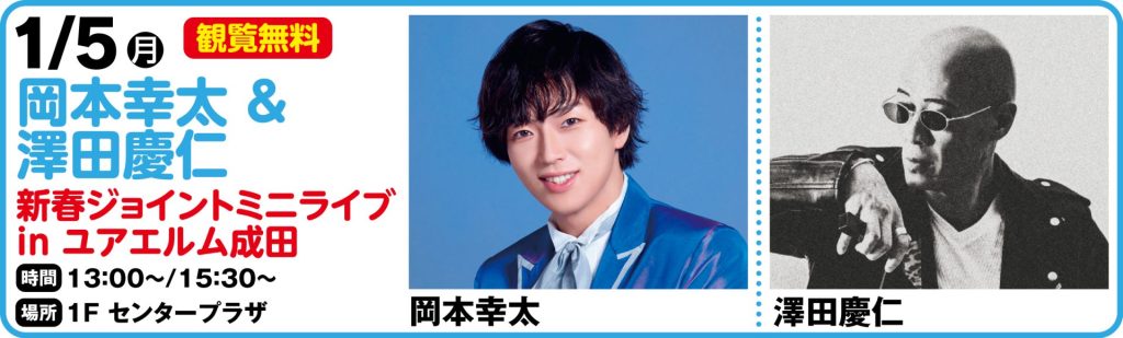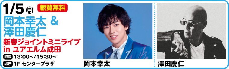 ミニライブの観覧はフリーとなりますが、ステージ前の着席観覧エリアは定員に達した場合入場制限を設けさせていただきます。またイベント当日、会場にて岡本幸太の新曲をご購入いただいたお客様に特典券をそれぞれ差し上げます。特典会参加券をお持ちの方はご購入枚数に応じて歌唱終了後行われる2ショット撮影会にご参加いただけます。