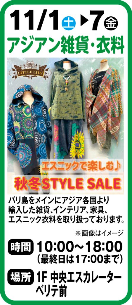 11月1日~7日 アジアン雑貨・衣料