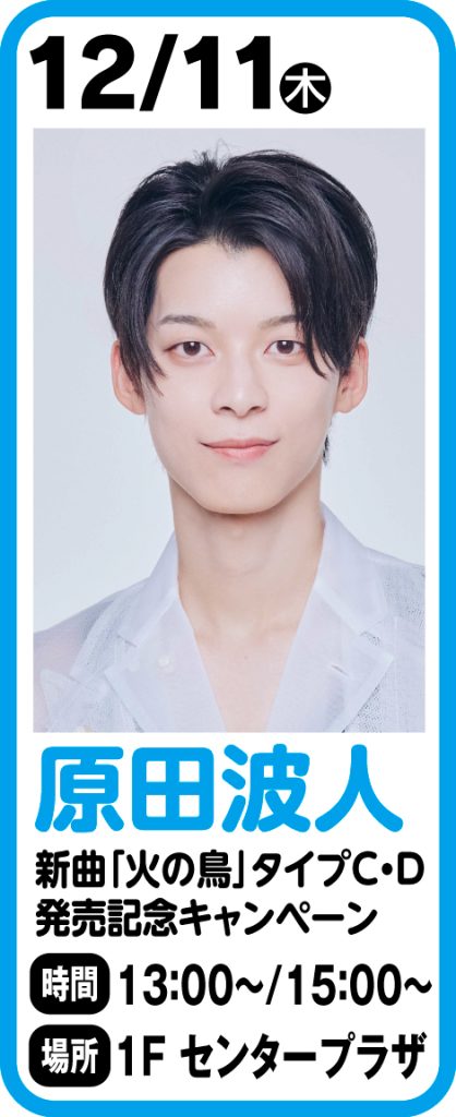当日会場・店内にて原田波人関連の商品をご購入された方には、ミニライブ終了後に行う特典会にご参加いただける特典券を