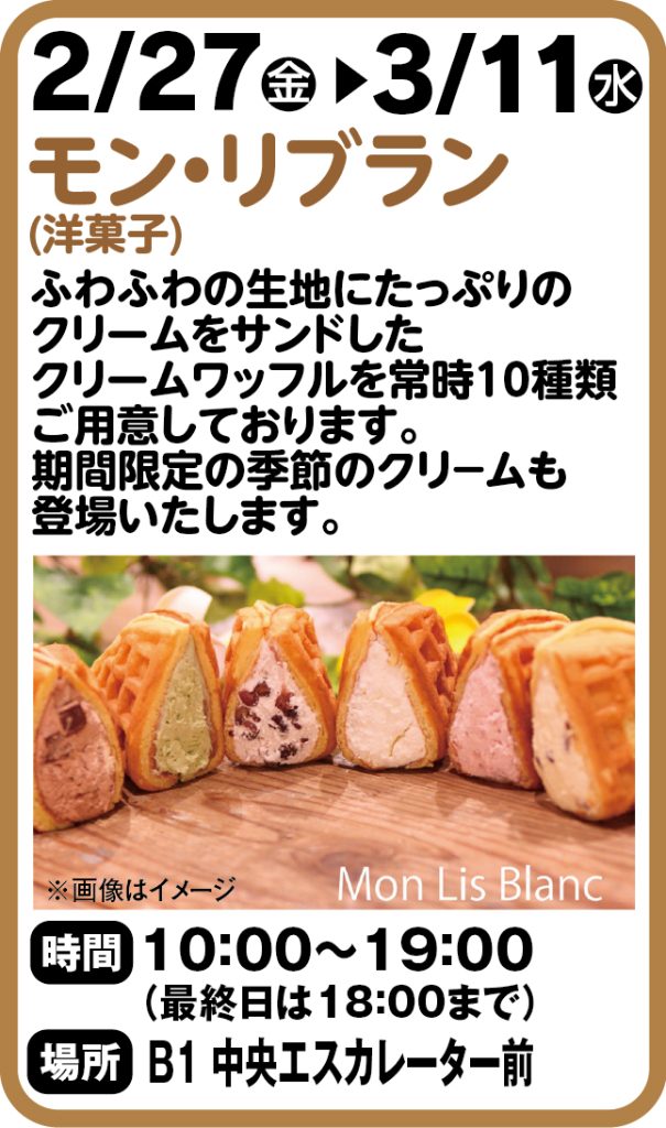 ふわふわの生地にたっぷりのクリームをサンドしたクリームワッフルを
