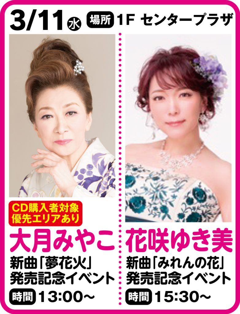 イベント当日(10時00分~)1Fセンタープラザ 会場特設販売ブースにて、下記対象商品を1枚ご購入の方に、先着で「整理番号付き優先入場券」をお渡しいたします。