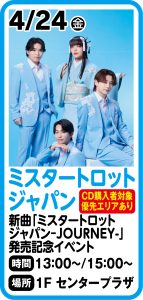 イベント当日 10:00より会場特設販売ブースにて、5月27日(水)発売「ミスタートロットジャパン -JOURNEY-」をご予約(全額前金)いただいた方に先着で「整理番号付き優先入場券」「特典会参加券」をお渡しいたします。「特典会参加券」はご購入枚数分お渡しいたします。
