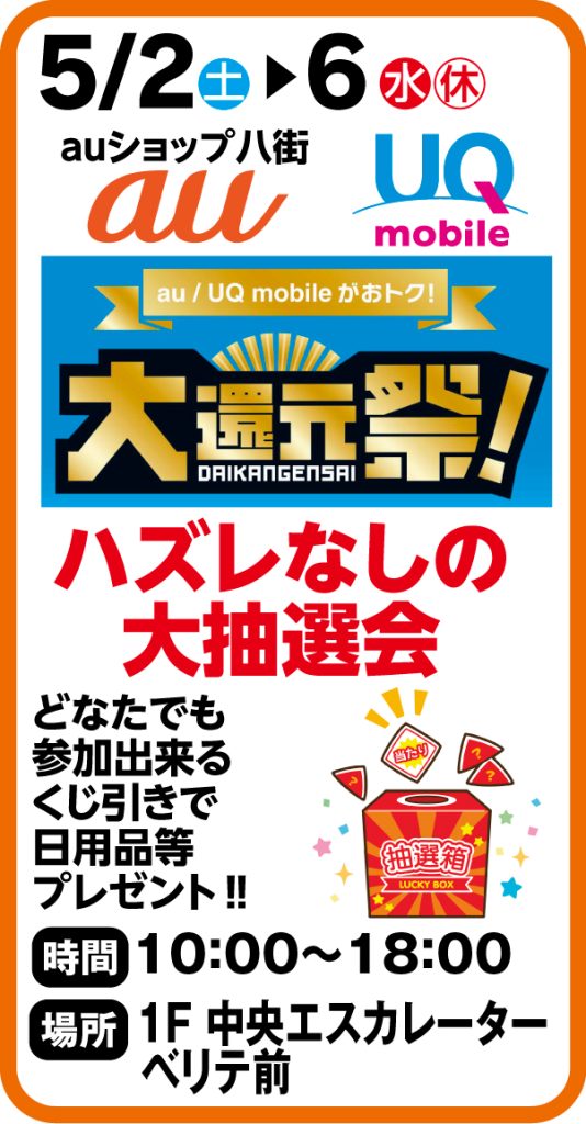 5月2日~6日 auショップ八街 ハズレなしの大抽選会