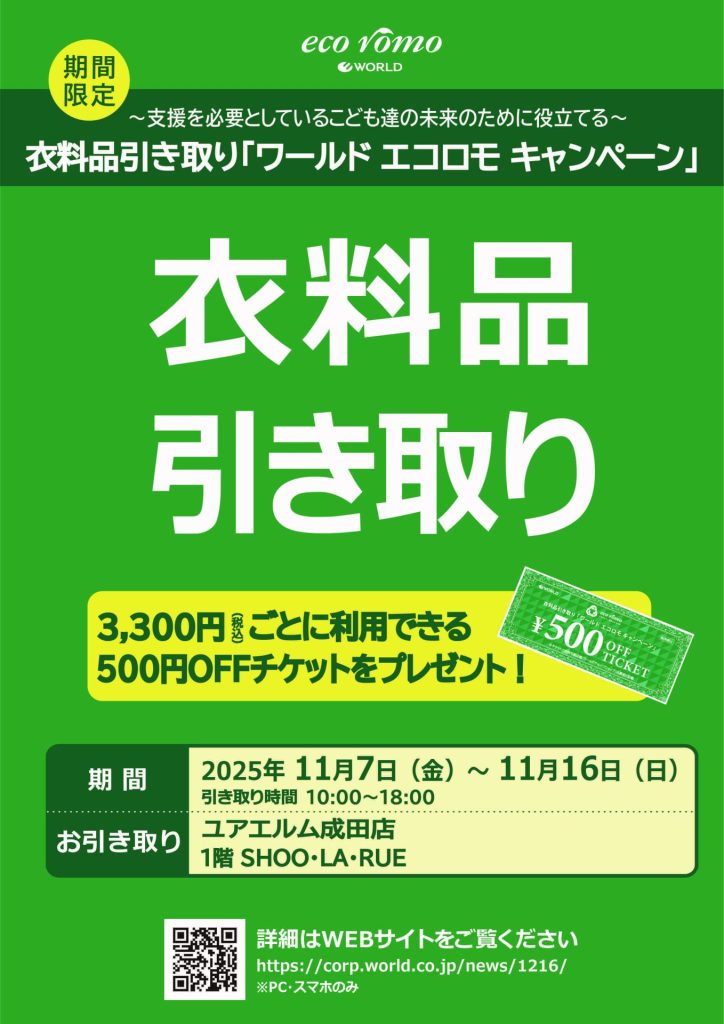 ♪♪衣料品引き取り「ワールドエコロモキャンペーン」