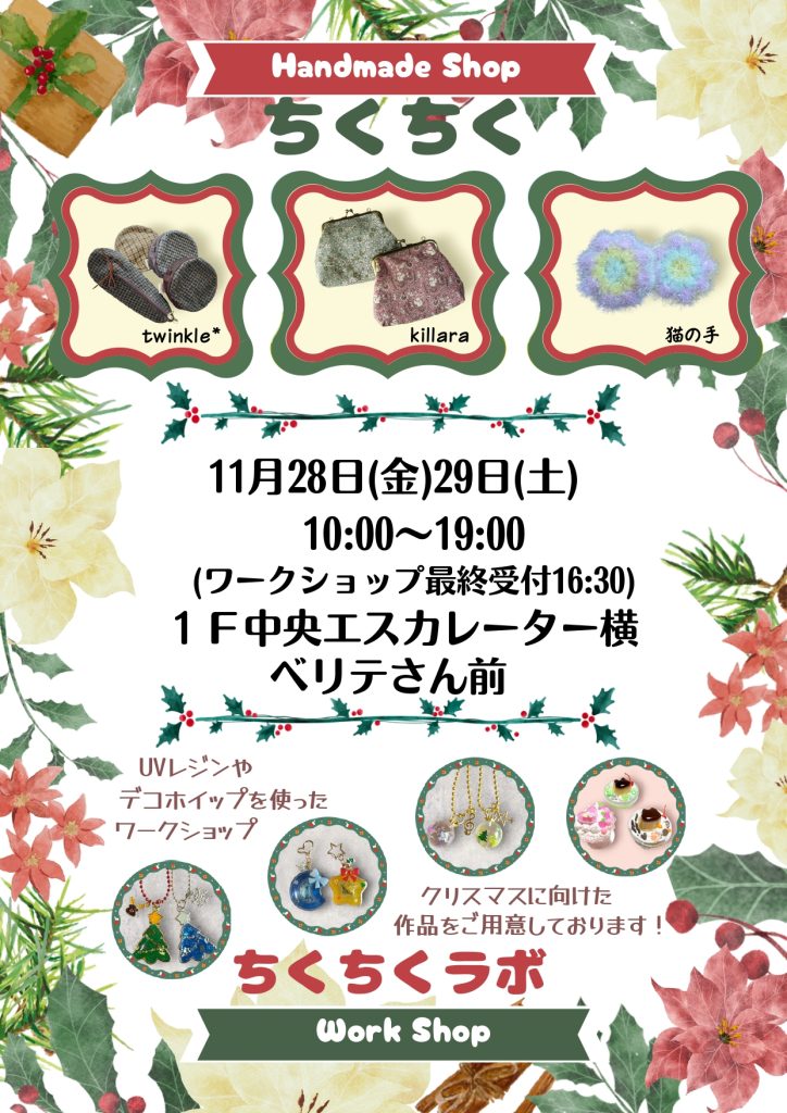 2日間だけ限定のハンドメイドショップ『ちくちく』をオープンいたします