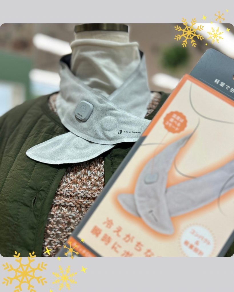 首もとをやさしく温めてくれるヒータースカーフなど、