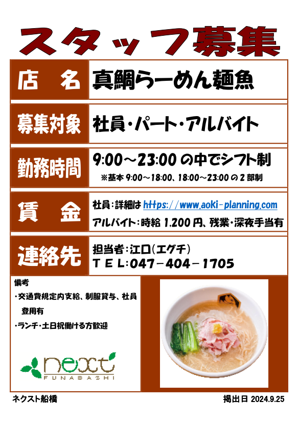 麺とスープにとことんこだわった魅惑のらーめん。一緒に楽しく働きませんか?