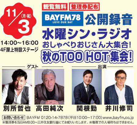 BAYFM78公開録音 水曜シン・ラジオ おしゃべりおじさん大集合! 秋のTOO HOT集会!