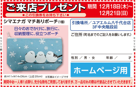 シマエナガ マチありポーチ(1個) プレゼント お一人様1点限り
