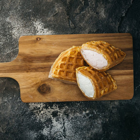 ふわふわ生地にたっぷりのクリームをサンドしたワッフルケーキを10種類販売いたします。