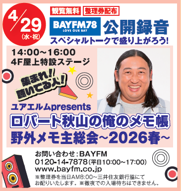 BAYFM78公開録音 ロバート秋山の俺のメモ帳 野外メモ主総会~2026春~