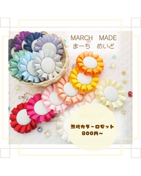 ・単色カラーロゼット制作のみ800円(パールつきくるみボタンは1100円)