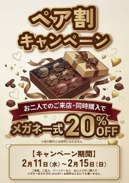 それぞれのメガネが通常価格から20%OFFとなる、大変お得なキャンペーンです。